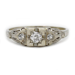 Antique .25 Ct Transitional Cut Art Deco Engagement Ring with Filigree Engravings