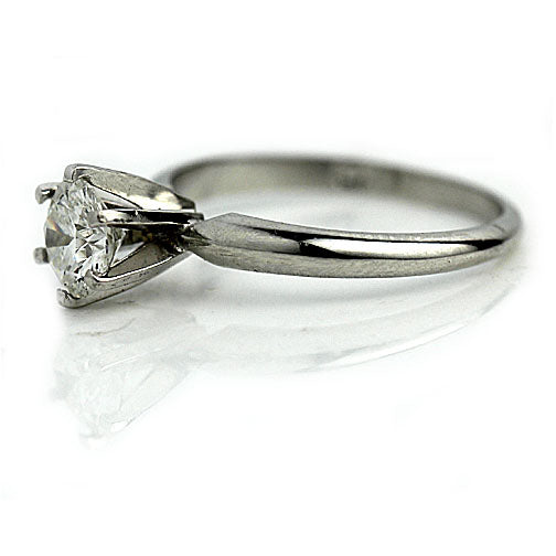 The Indra ring is an authentic vintage solitaire engagement ring circa 1990's. The ring centers bright white .81 carat GIA certified brilliant cut diamond of H color, I1 clarity. Crafted in a 6 prong 14 karat white gold setting. A classic solitaire ring, in pristine condition.