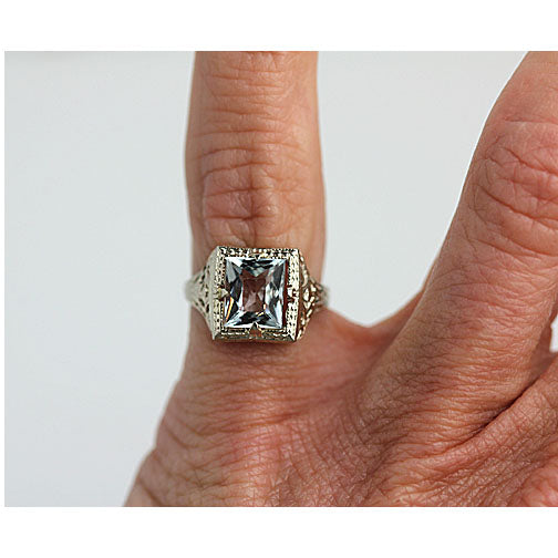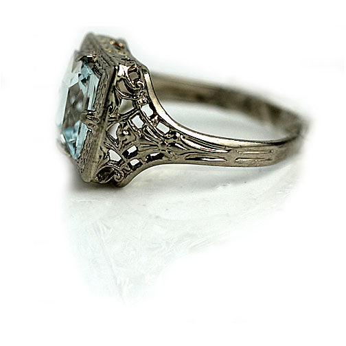 Art Deco 1.50CTW Square Cut Aquamarine Antique Gemstone Engagement Ring