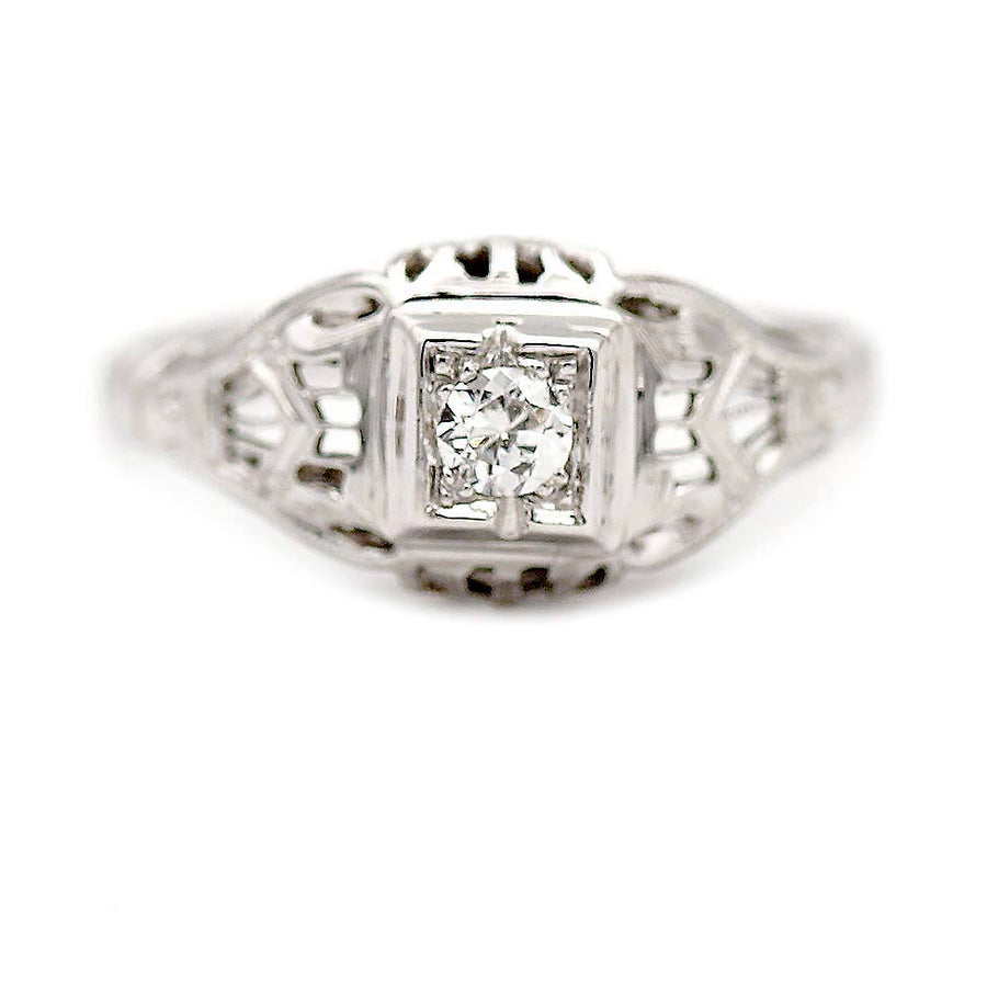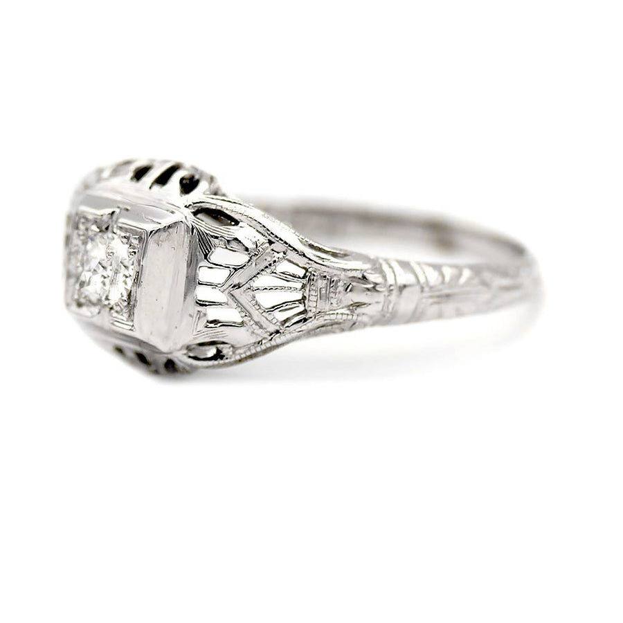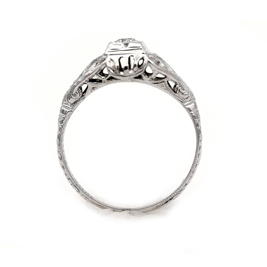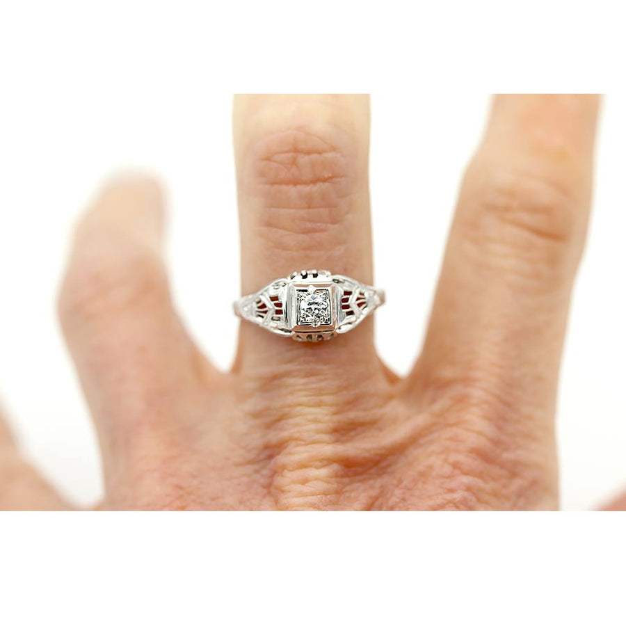 Art Deco .15 CTW Euro Cut Diamond Solitaire Vintage Engagement Ring