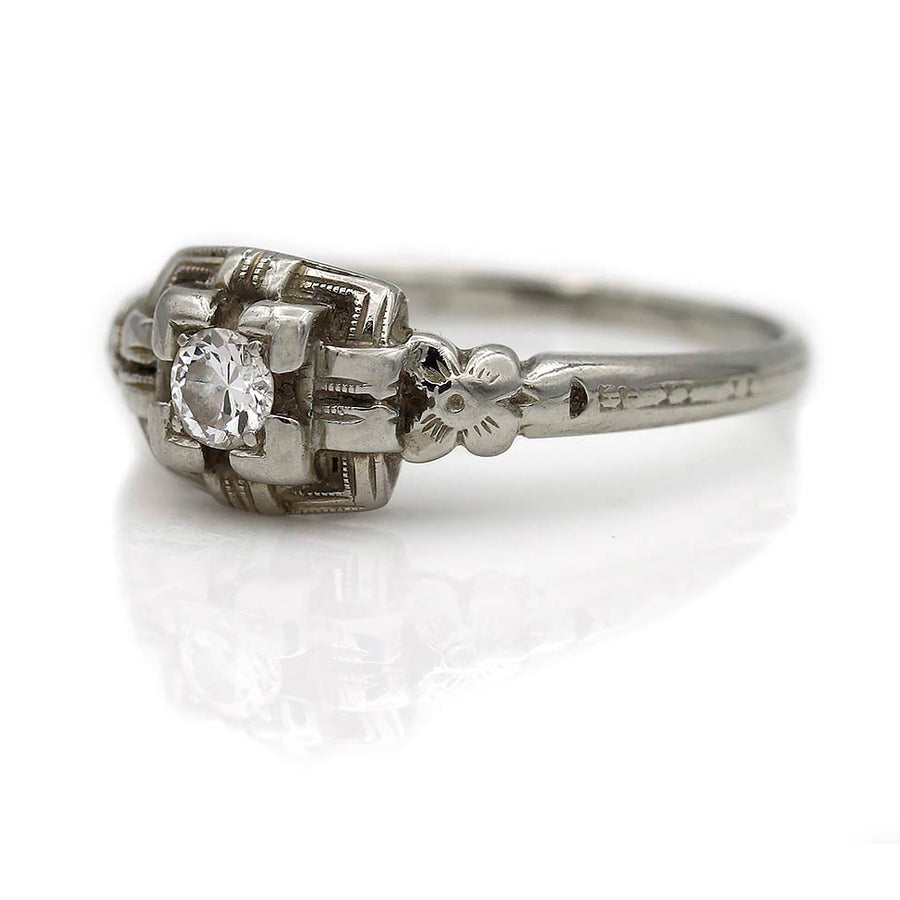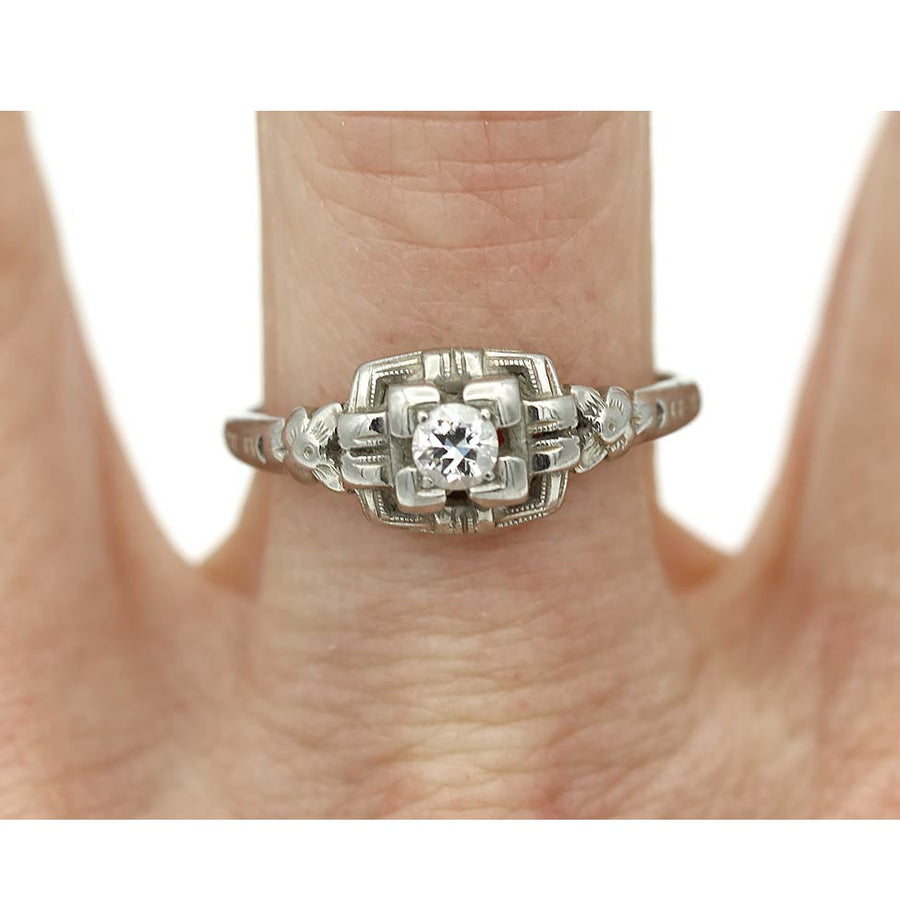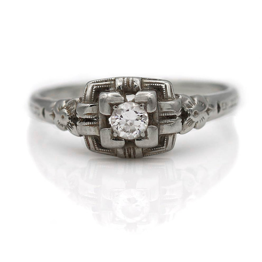 Art Deco .25 CTW Geometric Square Floral Diamond Antique Engagement Ring