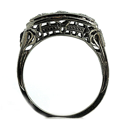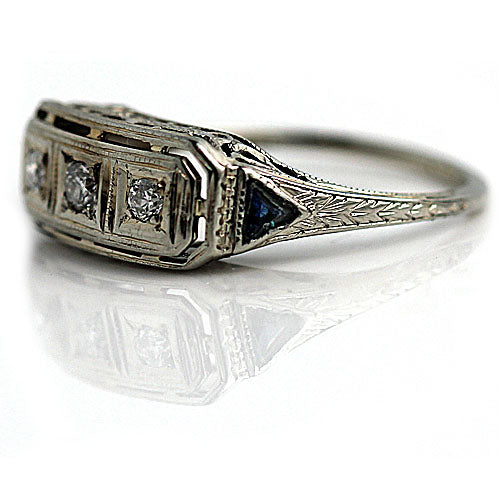 Art Deco .30 CTW Three Stone Diamond Sapphire Vintage Engagement Ring