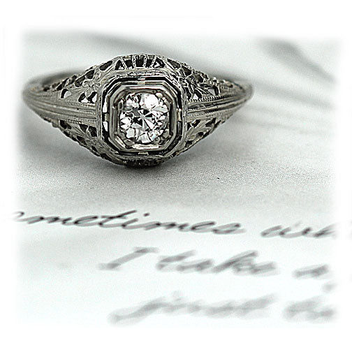 Art Deco .35 CTW Octagonal Geometric Vintage Diamond Engagement Ring