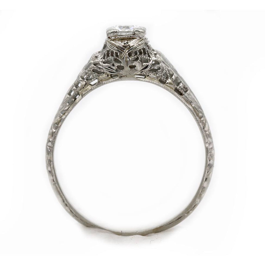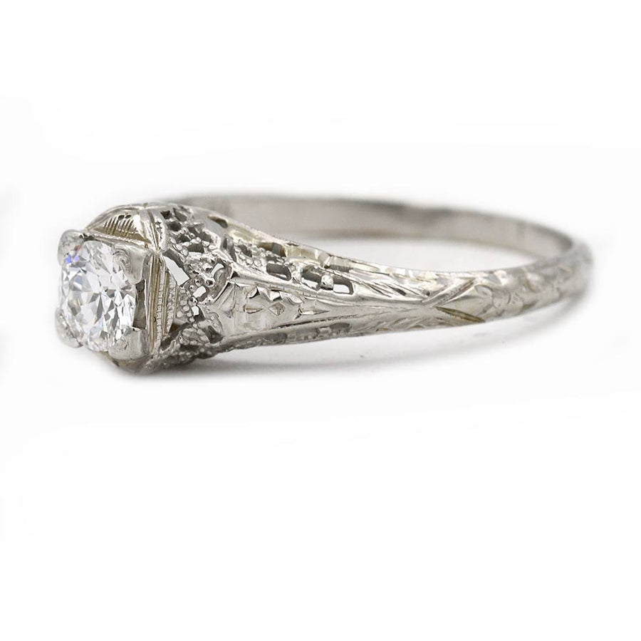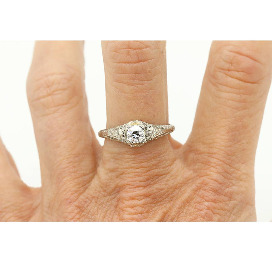 Art Deco .35 CTW Solitaire European Cut Vintage Diamond Ring with Filigree Engravings