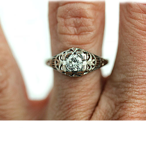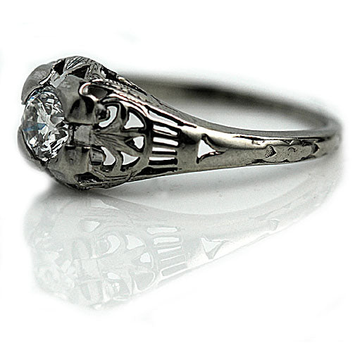 Art Deco .39 CTW 18 Karat White Gold Vintage Diamond Engagement Ring GIA J/SI1