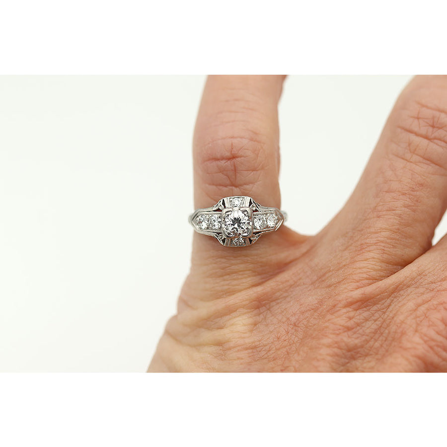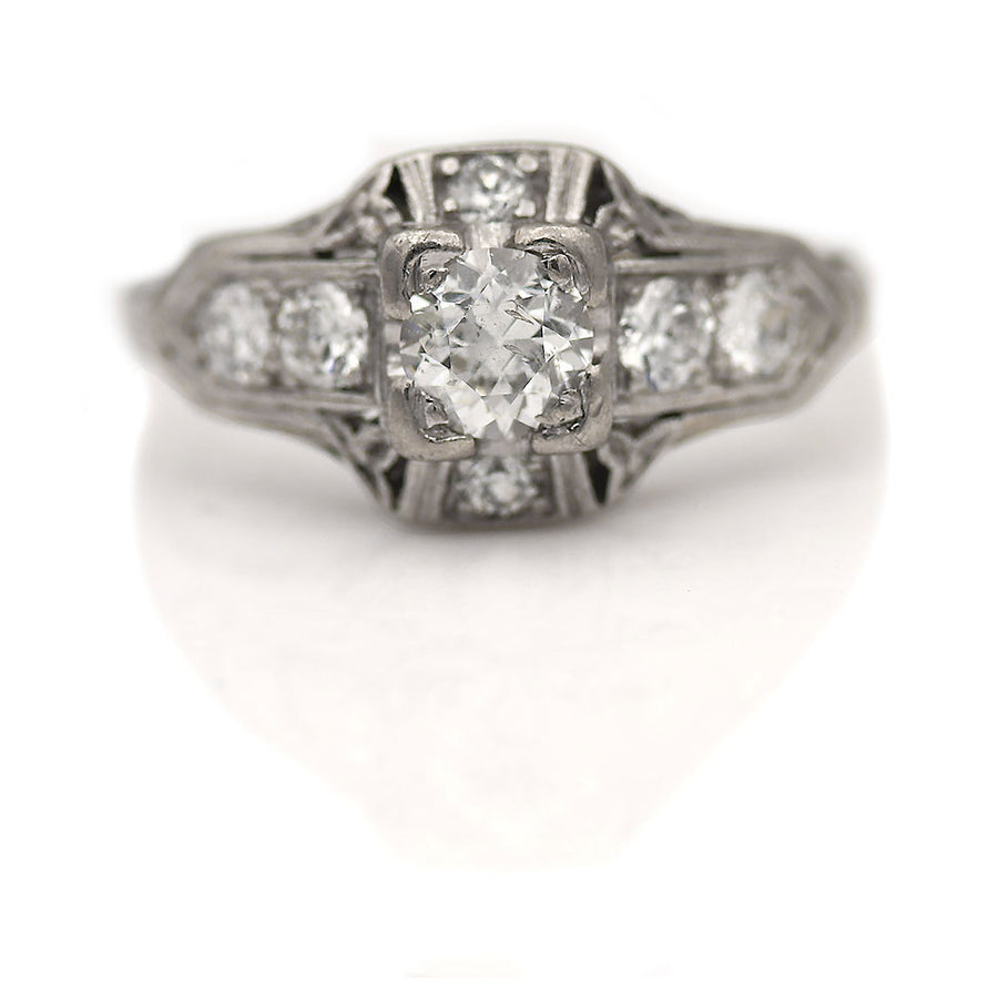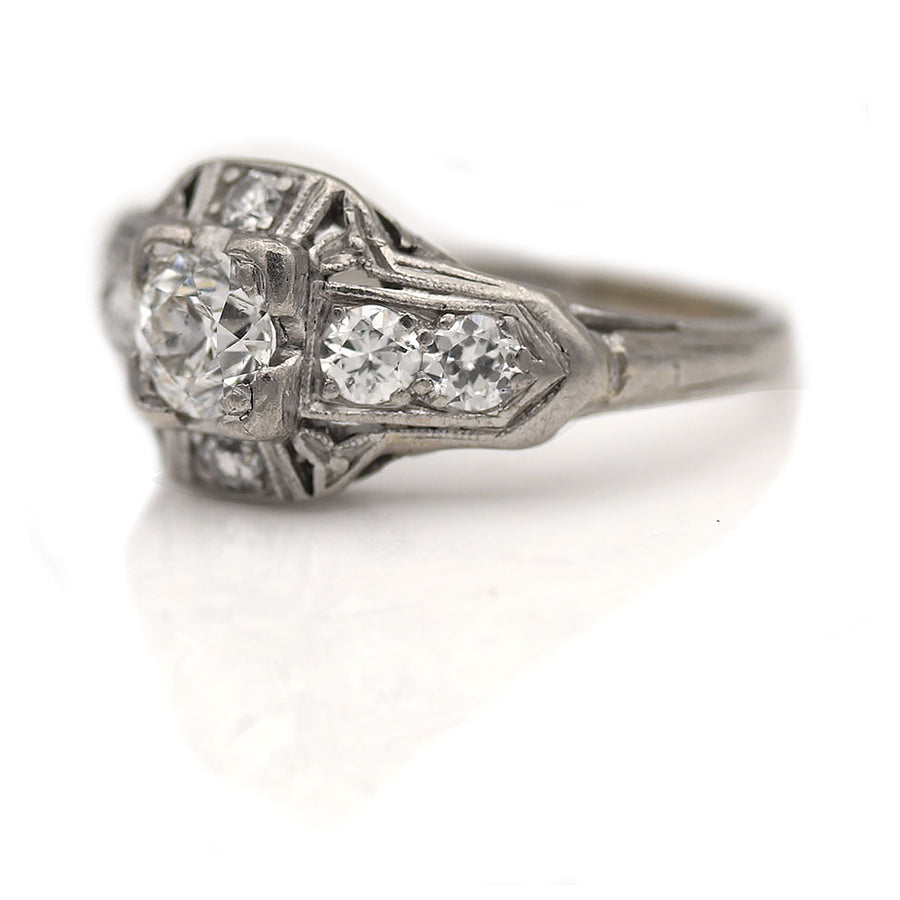 Art Deco .50 CTW Platinum Old European Cut Diamond Antique Engagement Ring