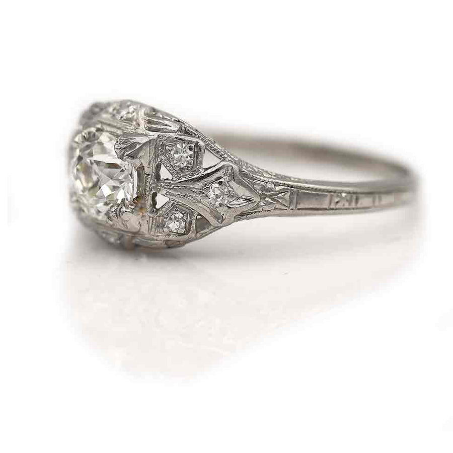 Art Deco .61 CTW Old European Cut Platinum Antique Engagement Ring