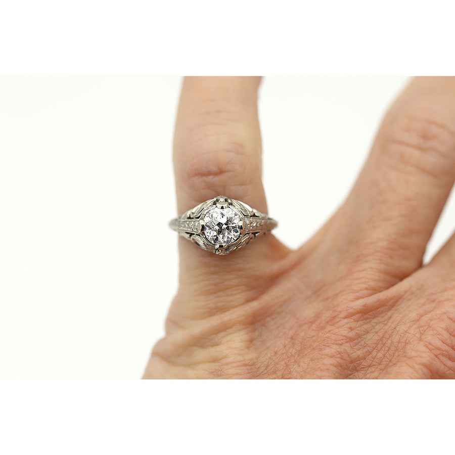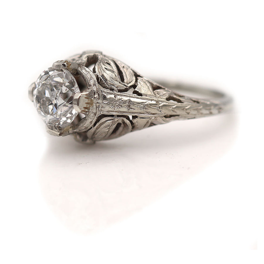 Art Deco .95 CTW Old European Cut Diamond Antique Engagement Ring GIA G/I1