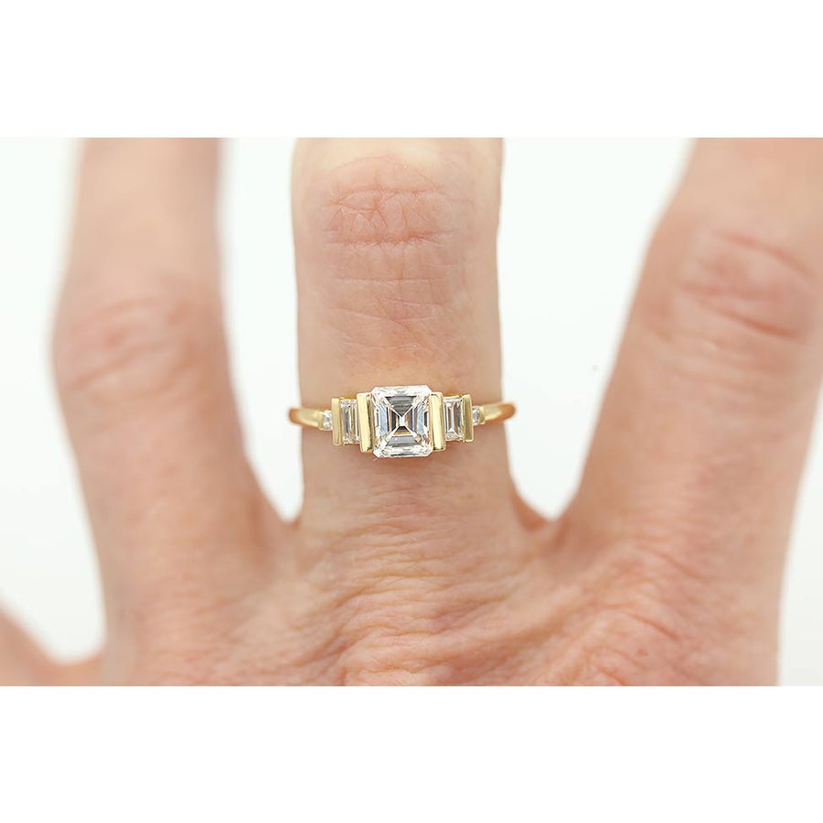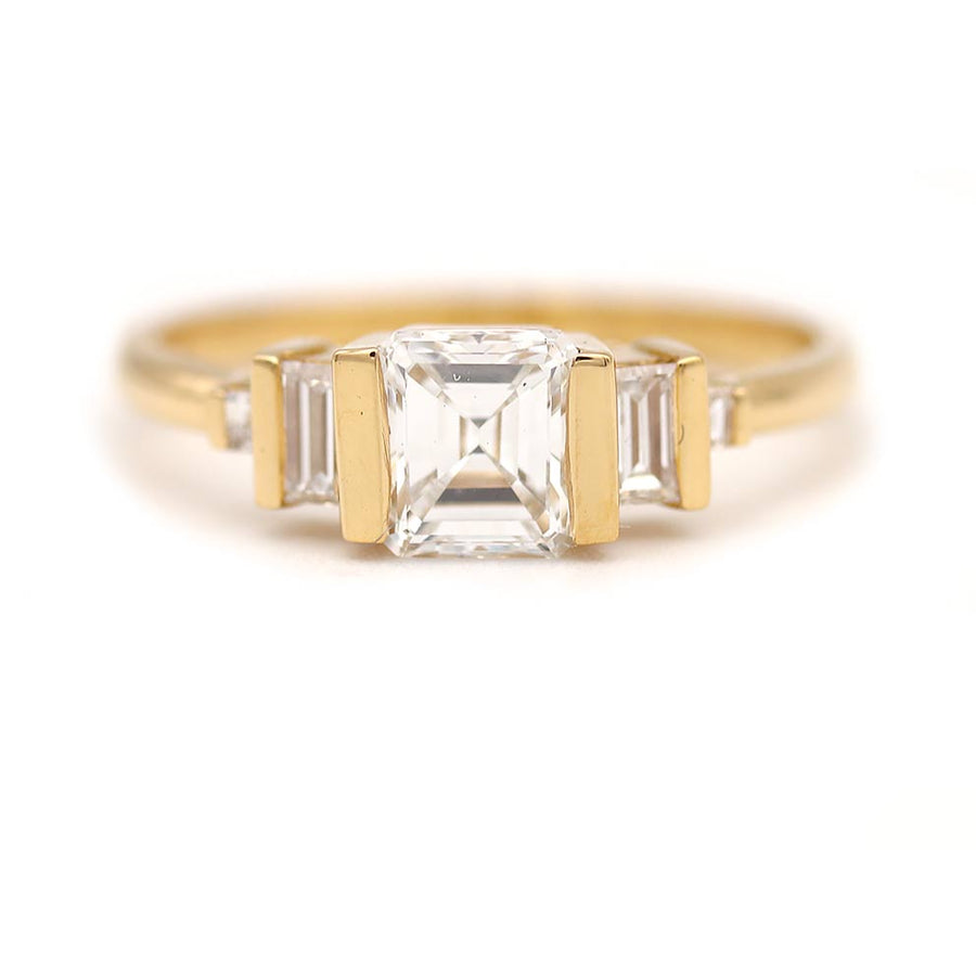 Art Deco Style 1.09 CTW 18 Kt Emerald Cut & Baguette Diamond Vintage Engagement Ring GIA F/VS1