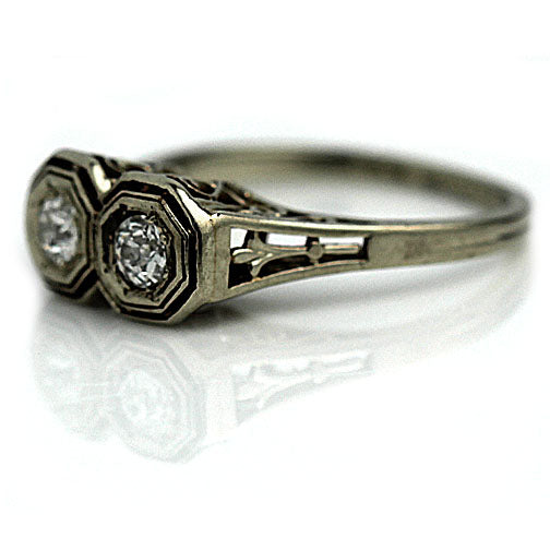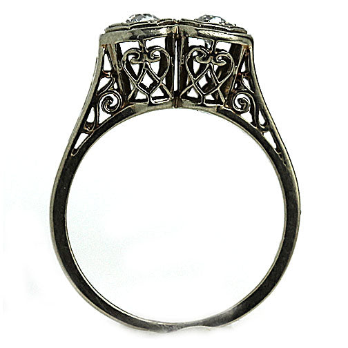 Art Deco Two Stone .30 CTW Mine Cut Diamond Antique Engagement Ring with Heart Motif