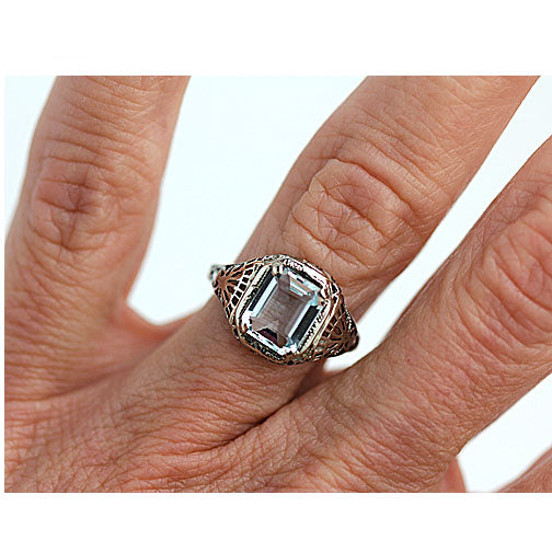 Estate 2.20 CTW Aquamarine Vintage Gemstone Engagement Ring