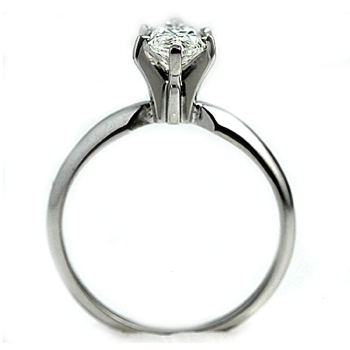 This sweet round brilliant engagement ring contains 1 marquis cut diamond weighing exactly 0.50 carats with a GIA report stating E color and VS2 clarity. Set in 14 kt white gold, this is a sweet marquis diamond engagement ring. $2,150.00