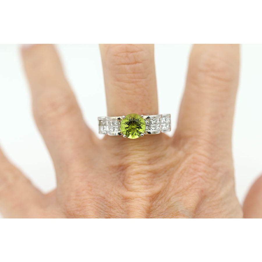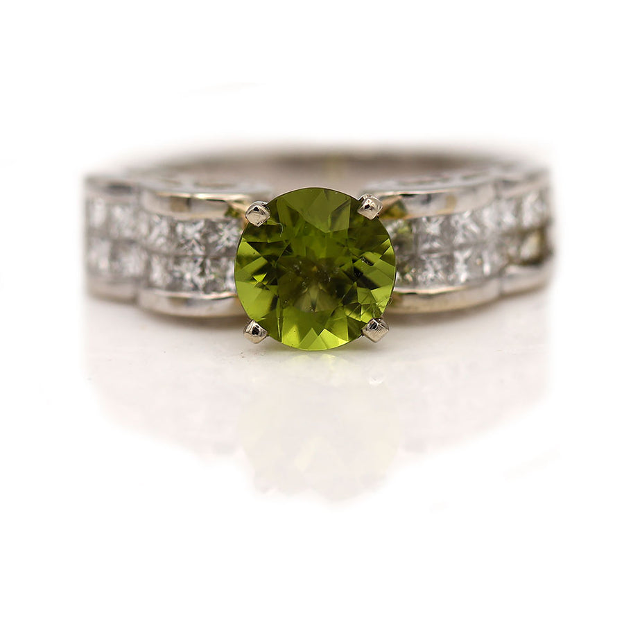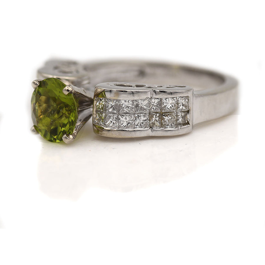 Estate Peridot and Princess Cut Diamond Gemstone Engagement Ring 1.60 Ct