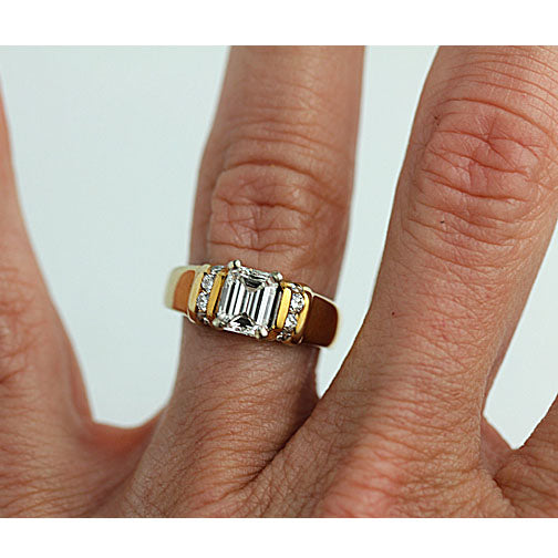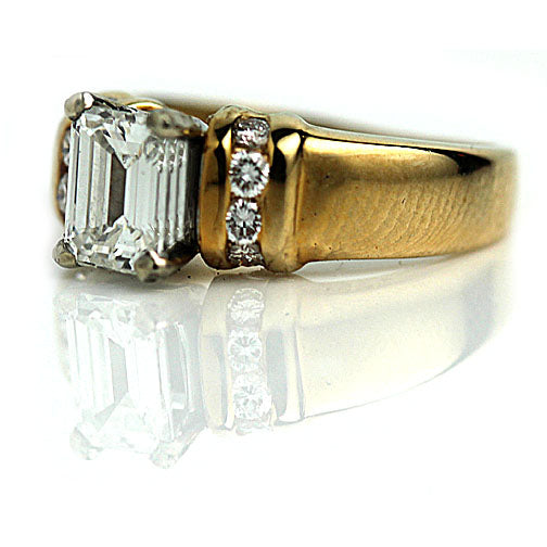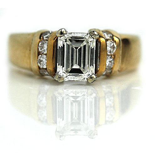 Mid-Century 1.13 CTW Emerald Cut Diamond Vintage Engagement Ring with Side Stones GIA J/VS1
