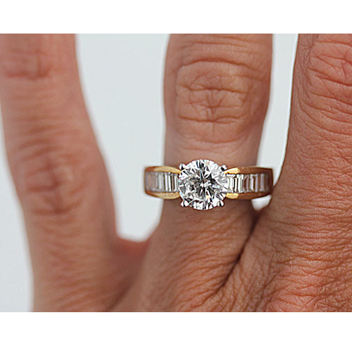 Mid-Century 2.10 CTW Round Diamond Vintage Engagement Ring w/ Baguettes GIA K/I1