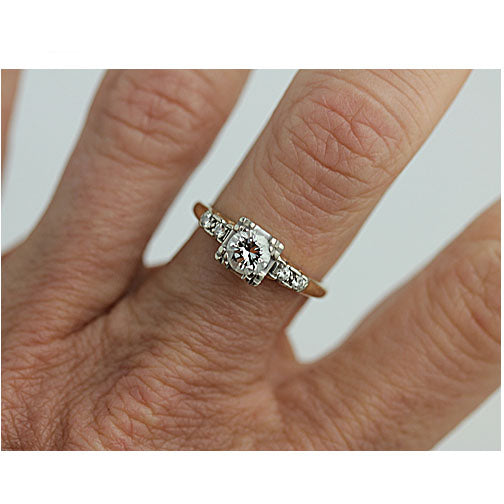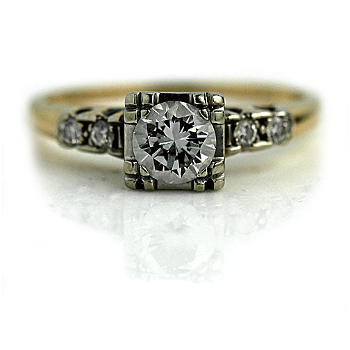 Mid-Century .63 CTW Two Tone Square Vintage Diamond Engagement Ring