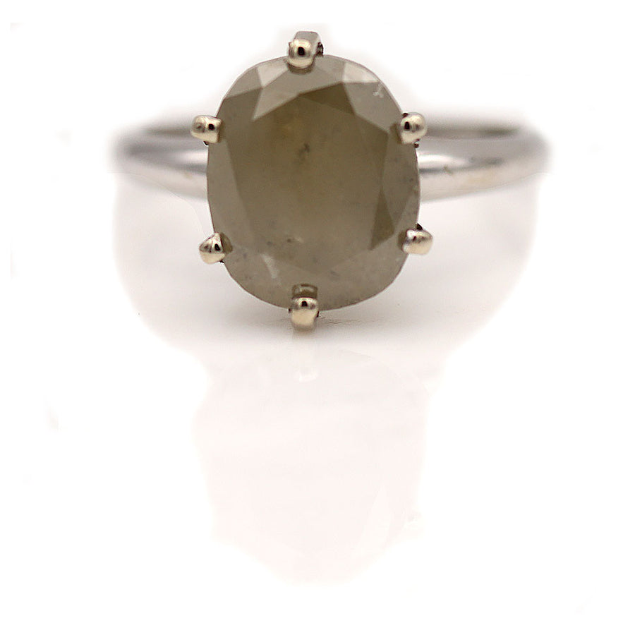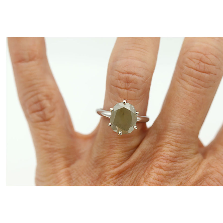4.40 Ct Oval Cut Salt and Pepper Diamond Solitaire Engagement Ring