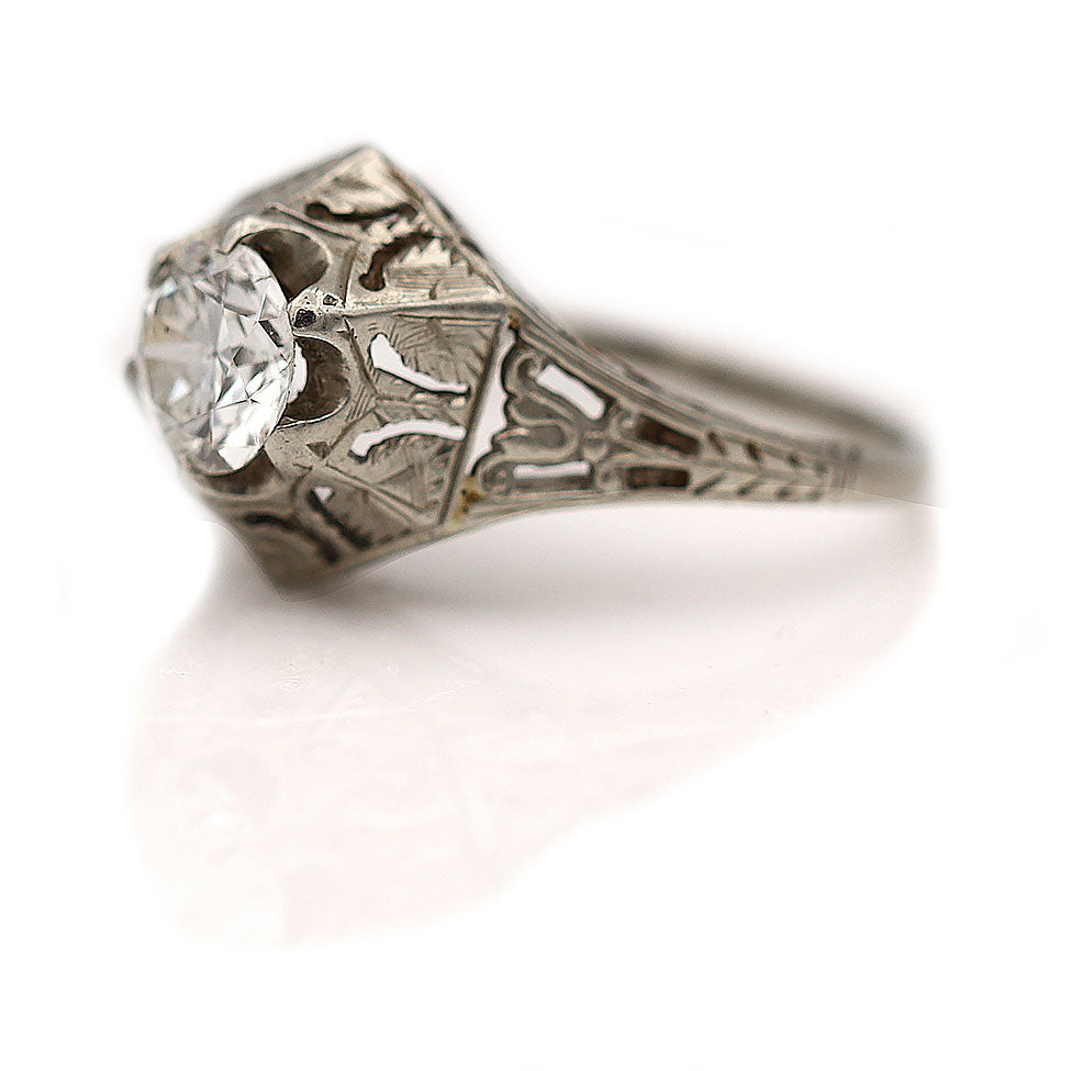 Unique Antique .90 CTW Old European Cut Art Deco Diamond Engagement Ring