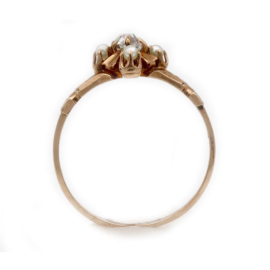 Victorian .20 CTW Old Mine Cut Diamond Pearl Antique Engagement Ring
