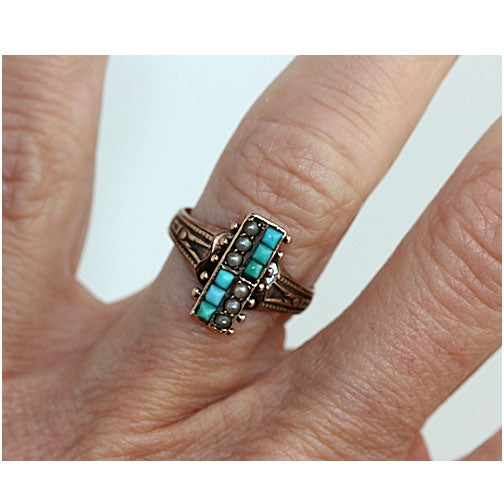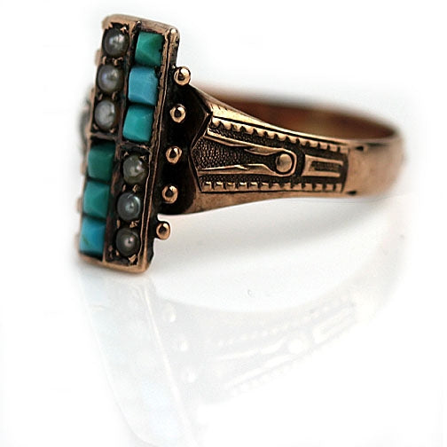 Victorian Turquoise & Pearl Antique Engagement Ring