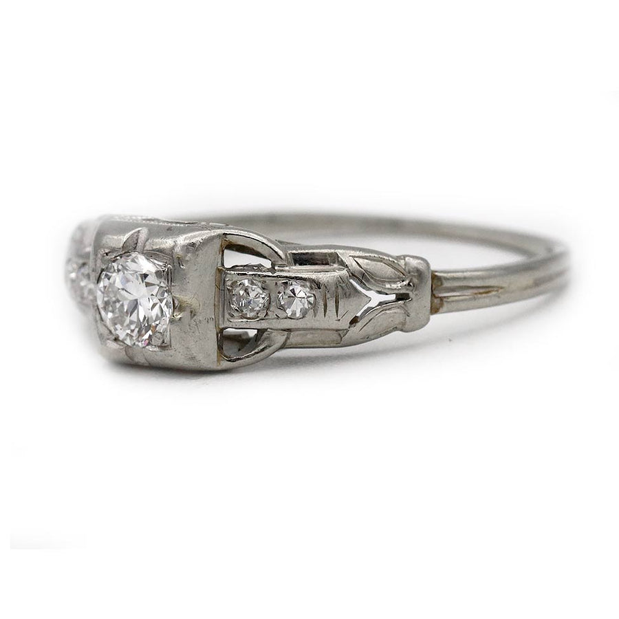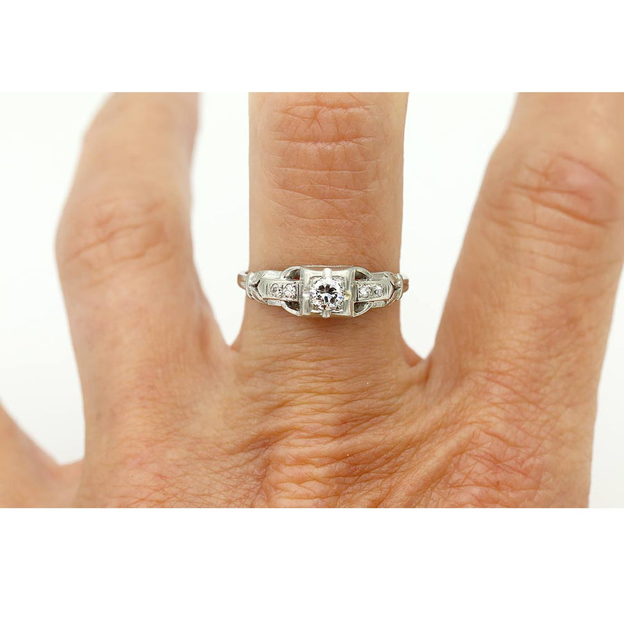 Vintage .28 CTW 18 Karat White Gold Diamond Art Deco Engagement Ring