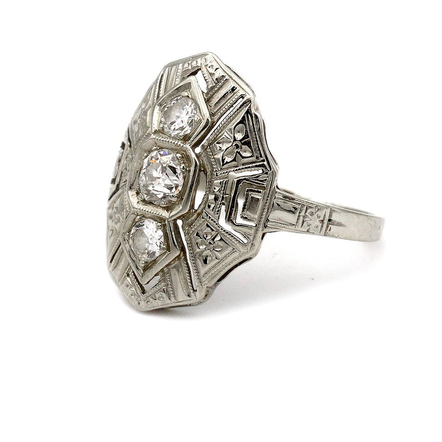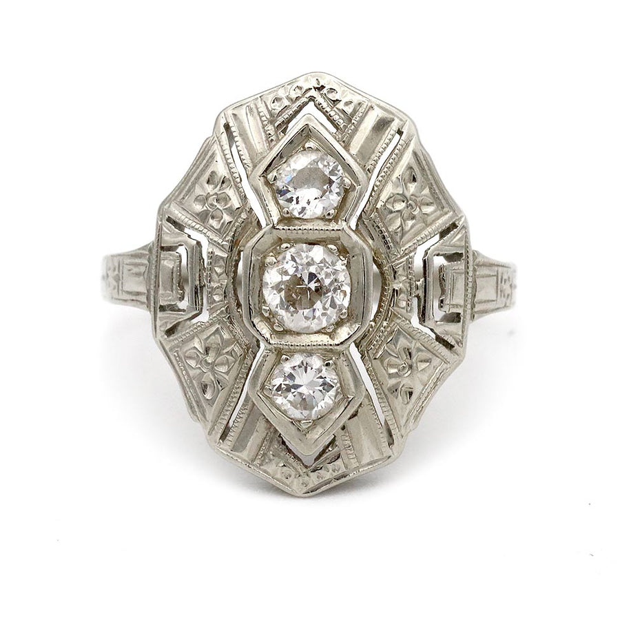 Vintage .35 CTW Navette Three Stone Diamond Antique Cocktail Ring
