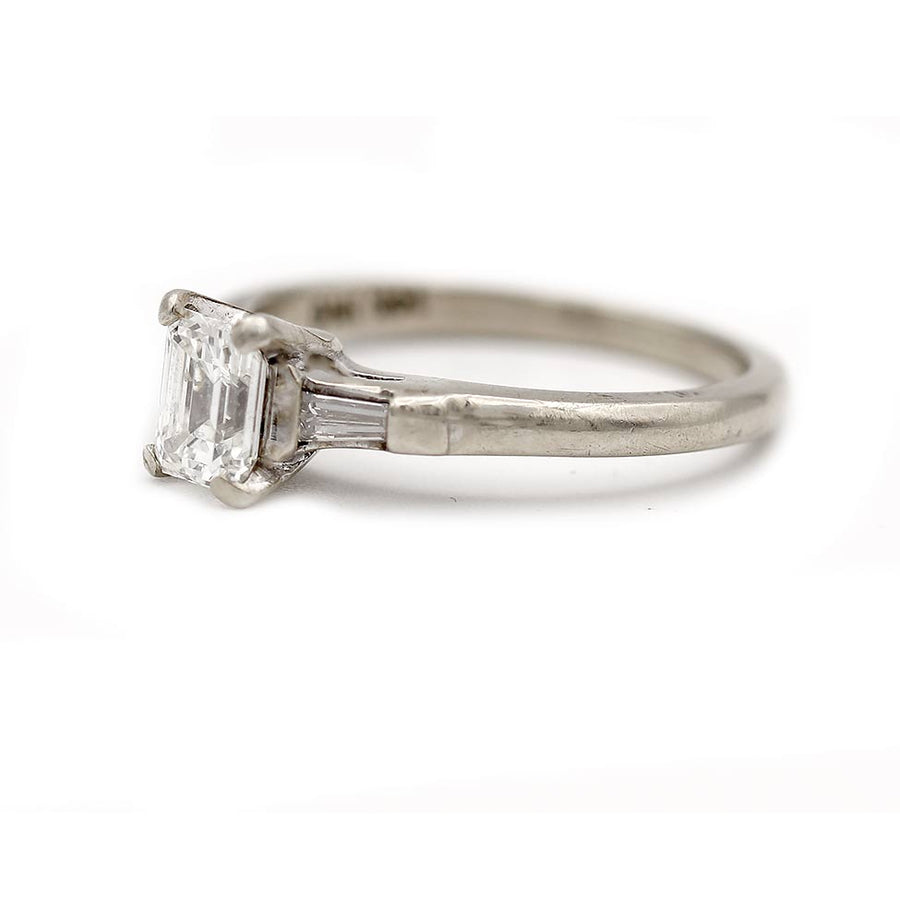 Vintage .65 CTW Emerald Cut Three Stone Estate Engagement Ring