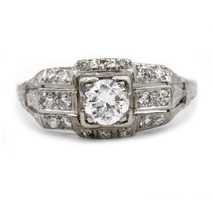 Art Deco Engagement Ring .87 CTW Old European Cut Diamond Platonum Antique Engagement Ring GIA H/SI1
