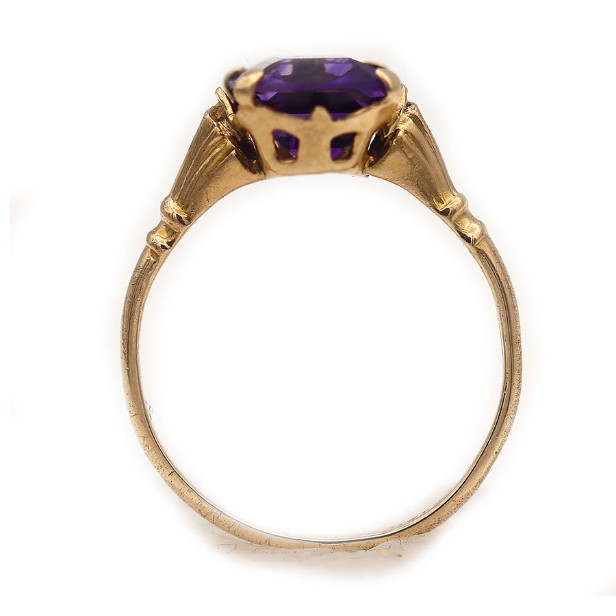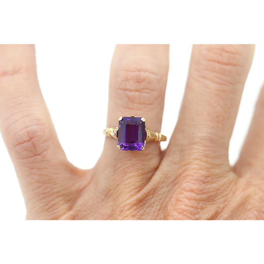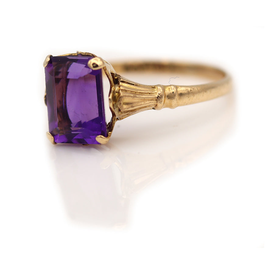 Victorian Emerald Cut Amethyst Engagement Ring in Yellow Gold | Circa 1900