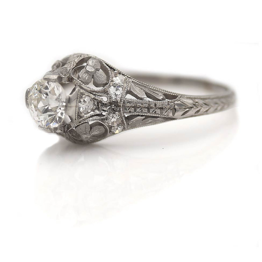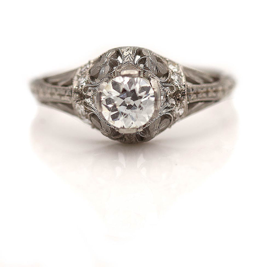Antique Filigree Engagement Ring Old European Cut Diamond .55CT G-VS2