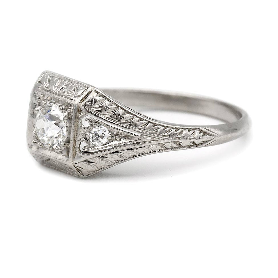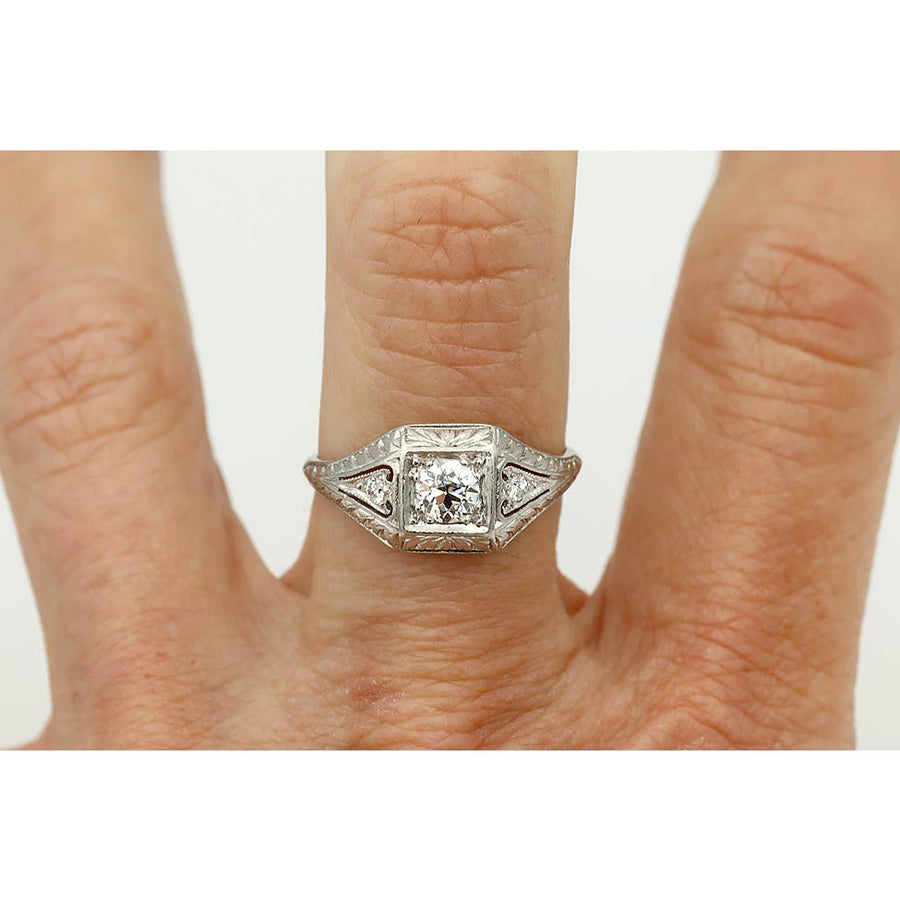 Intricate .36 CTW Art Deco Filigree Platinum Vintage Engagement Ring