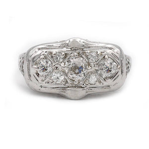 feature low-profile settings designed to sit close to the finger for a smooth and elegant look. Popular in Victorian, Art Deco, and Mid-Century jewelry, these rings highlight finely crafted metalwork while keeping the center diamond or gemstone securely nestled within the design. Their refined structure and timeless character make flat engagement rings a practical yet beautifully distinctive vintage choice.