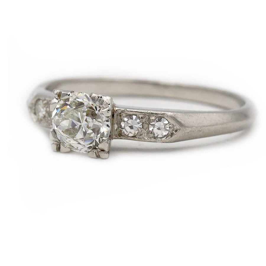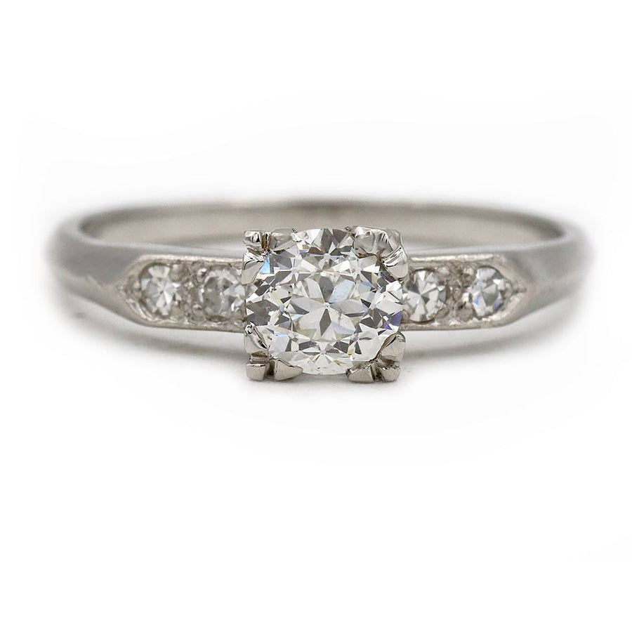Art Deco 1.05 CTW Vintage Diamond Engagement Ring with Mine Cut Diamonds