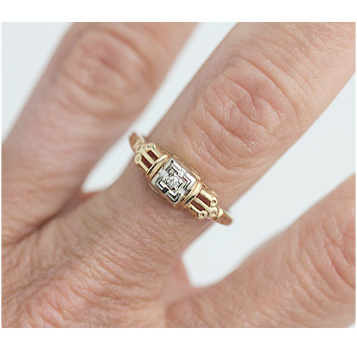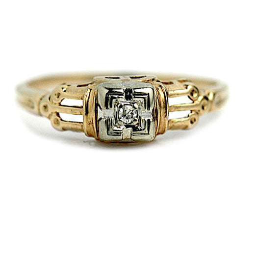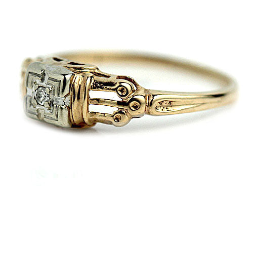 Mid-Century .05 CTW 1940s Antique Engagement Ring with Fluted Band
