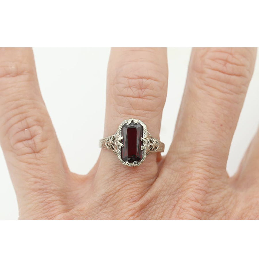 Art Deco Emerald Cut Garnet Engagement Ring — 1.50 ct, 14 Karat White Gold