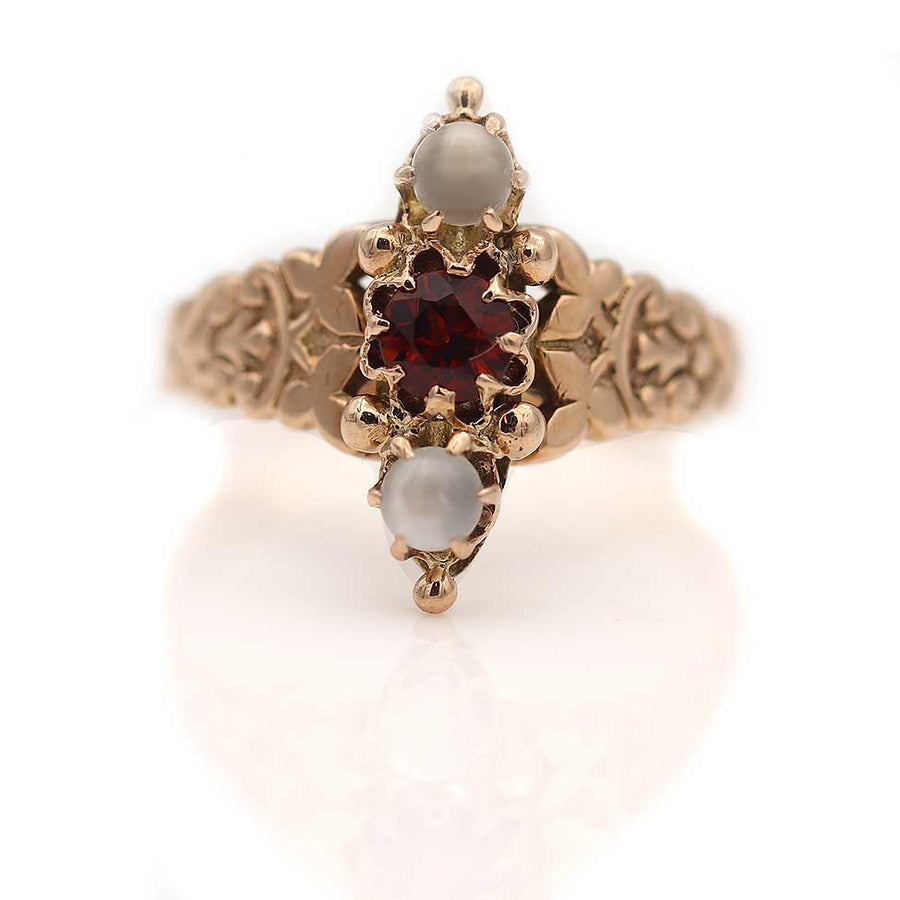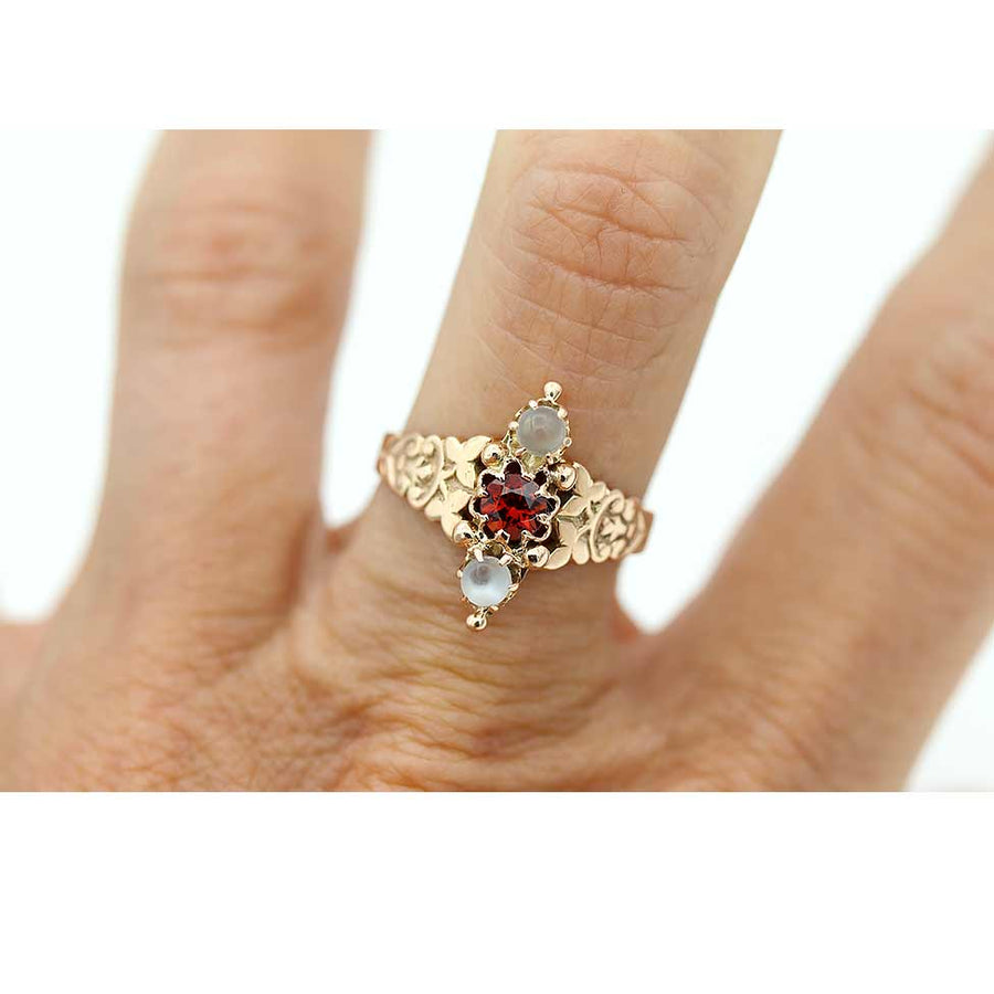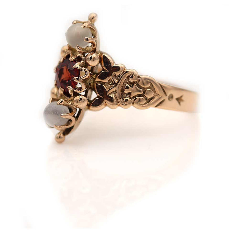 Victorian Round Cut Garnet & Moonstone Engagement Ring