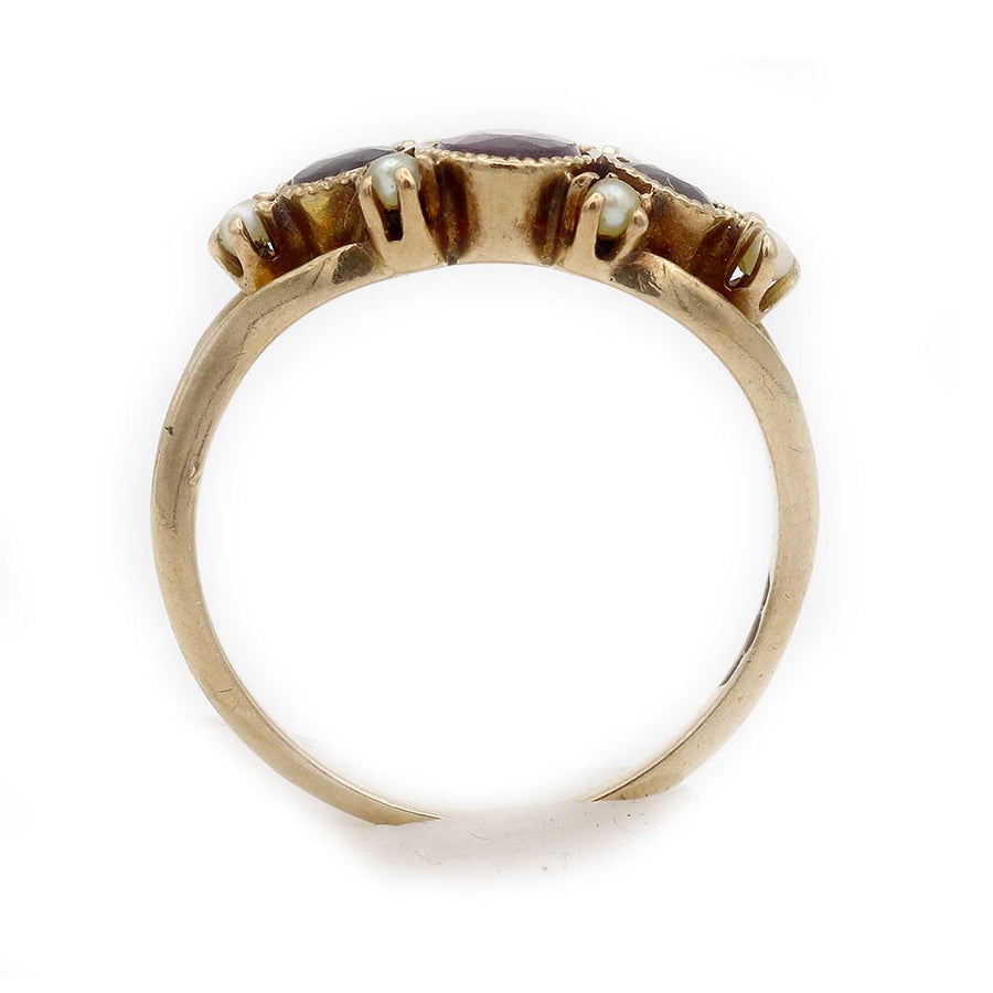Victorian 1.00 CTW Purple Garnet & Pearl Three Stone Engagement Ring