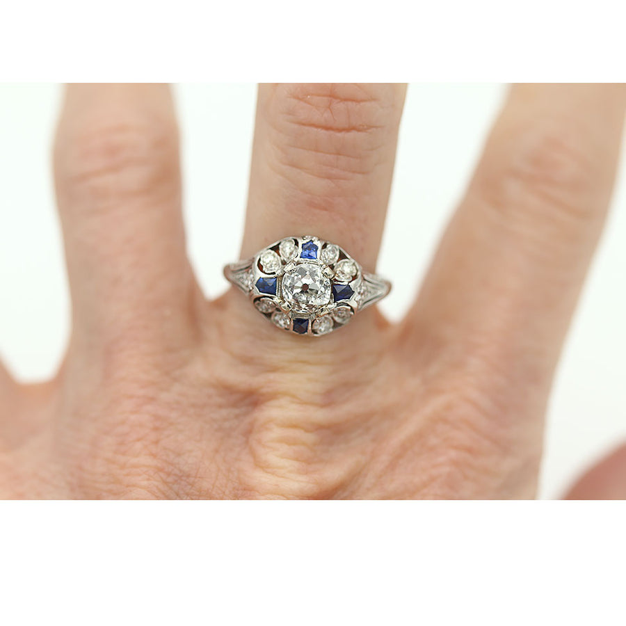 Art Deco 1.14 CTW Diamond & Sapphire Platinum Engagement Ring