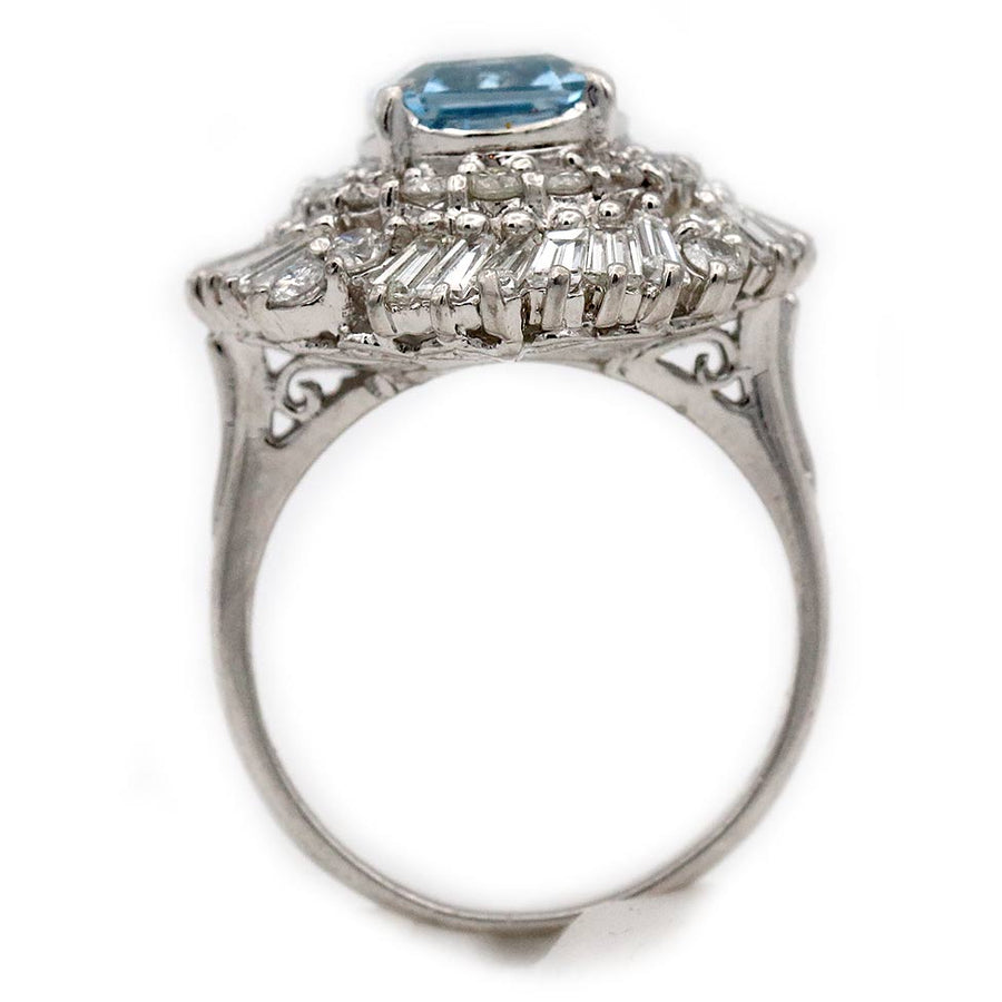 Vintage Aquamarine 4.20 Ctw Diamond Ballerina Cocktail Ring in Platinum