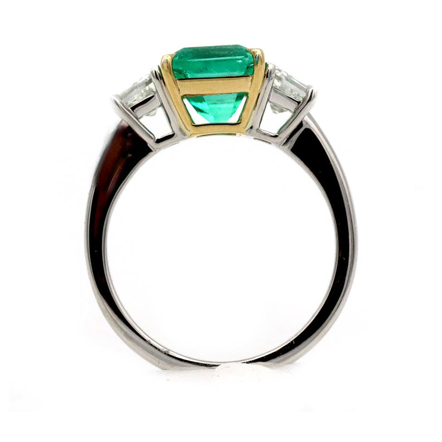 Vintage Colombian Emerald & Shield Cut Diamond Platinum Engagement Ring | GIA