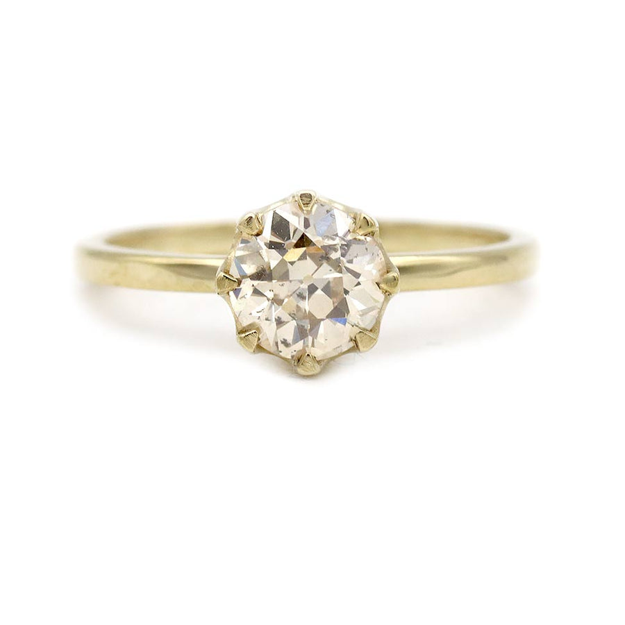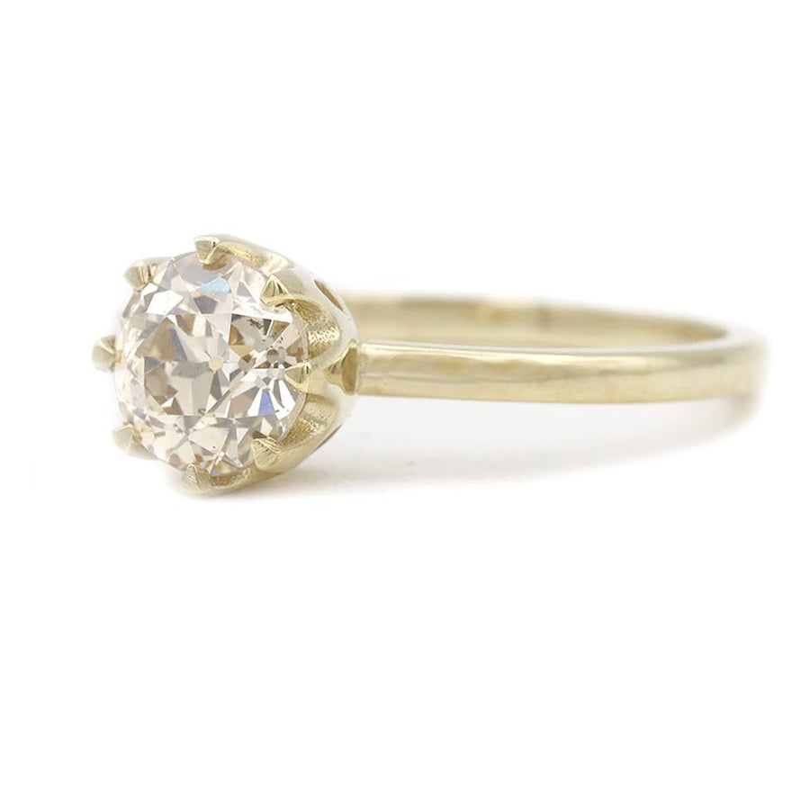 Vintage Style Champagne Old European Cut Diamond Engagement Ring in 14 Karat Yellow Gold — 1.00 Carat