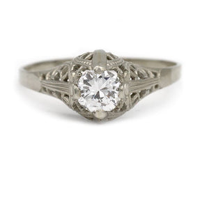 Art Deco .40 Ct Old European Cut Diamond Floral Engagement Ring in 14K White Gold | Circa 1920s