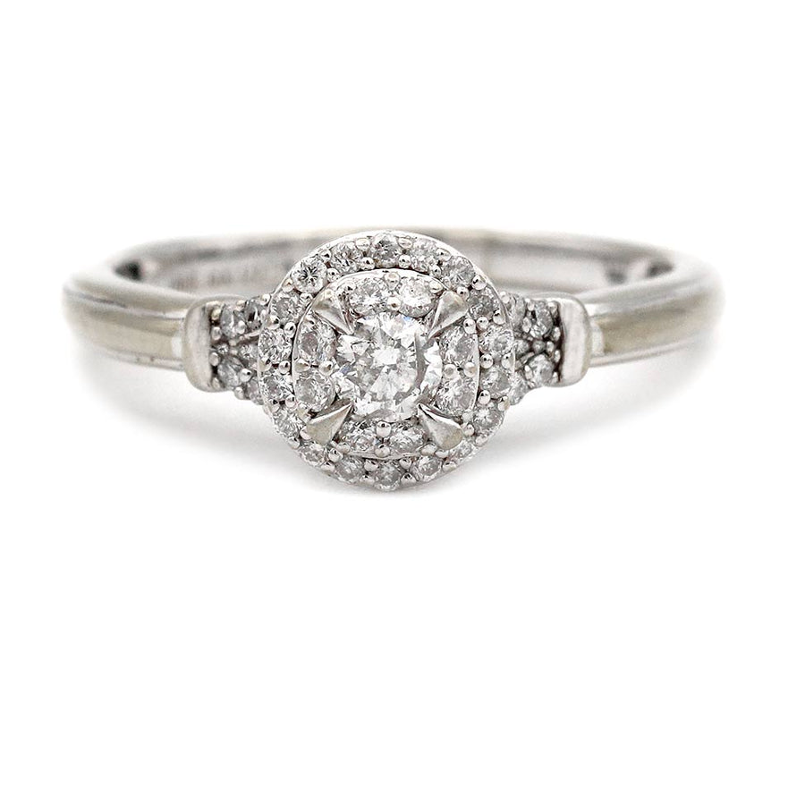 Mid-Century Round Diamond Halo Vintage Engagement Ring | Circa 1980s