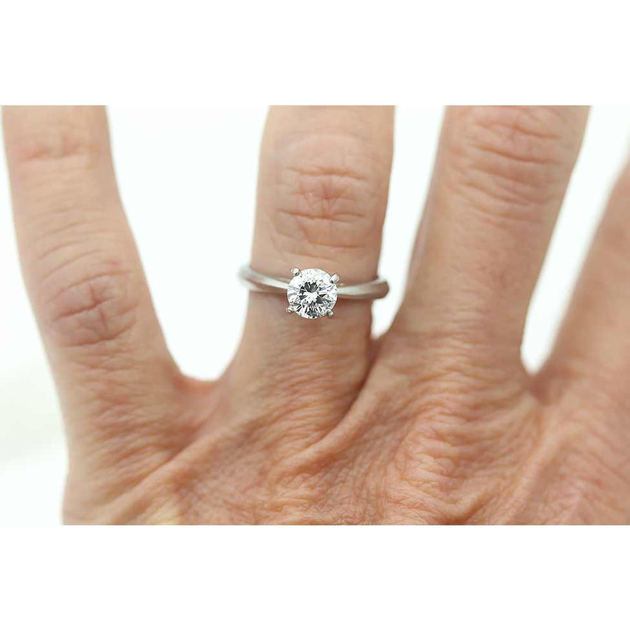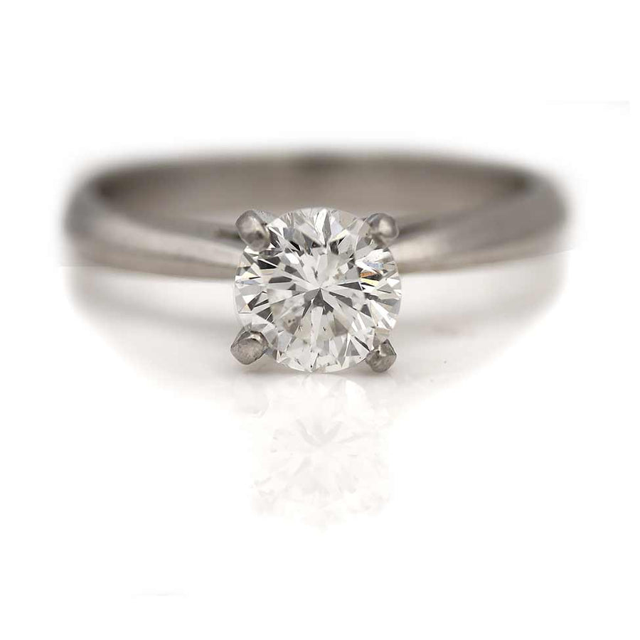 Mid-Century .75 CTW Round Cut Diamond Solitaire Platinum Vintage Diamond Ring