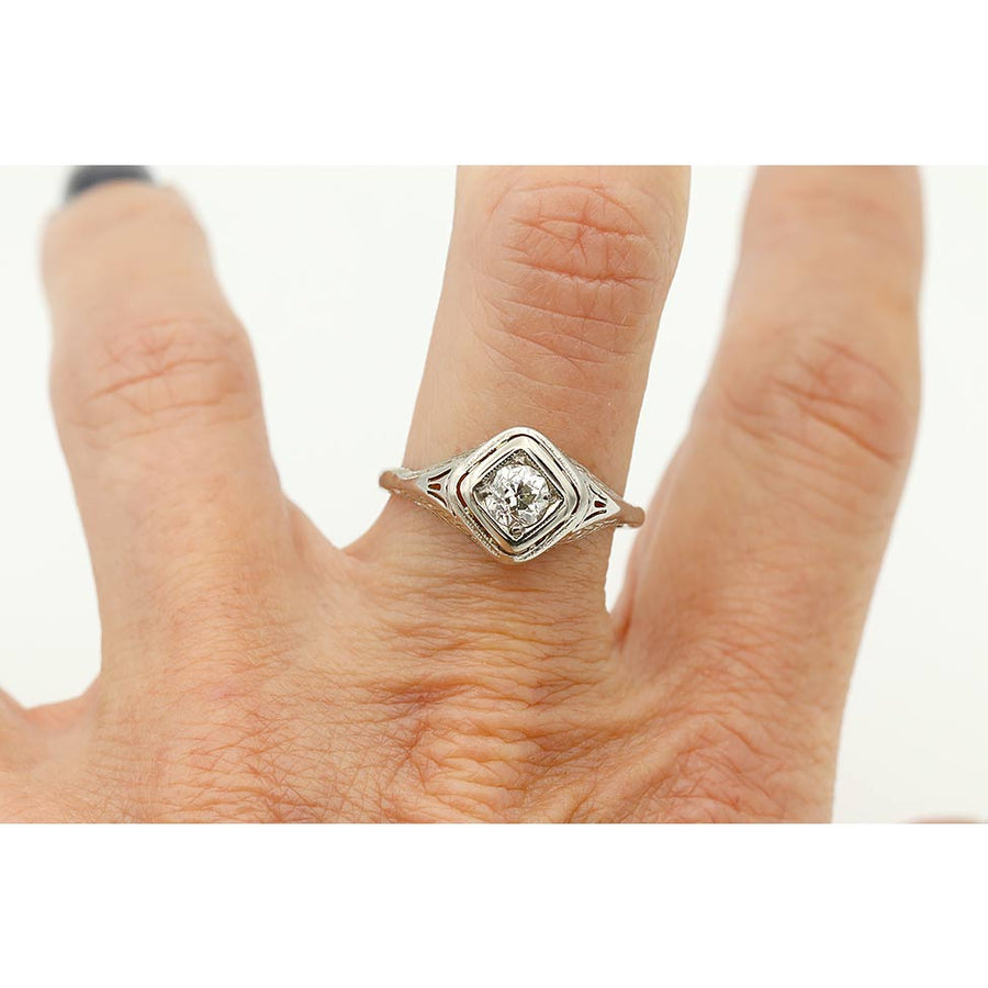 Antique .35 CTW Solitaire Art Deco Diamond Engagement Ring with Open Metal Work
