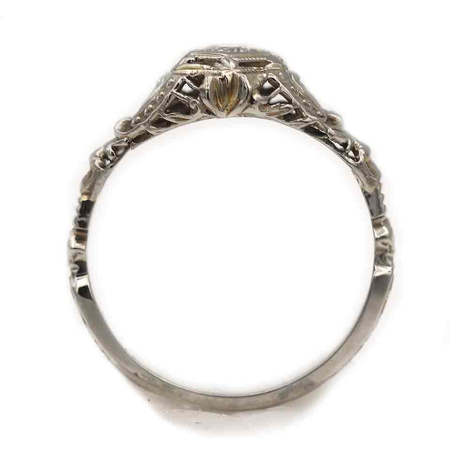 Antique .15 CTW Old European Cut Diamond 18 Karat White Gold Art Deco Engagement Ring