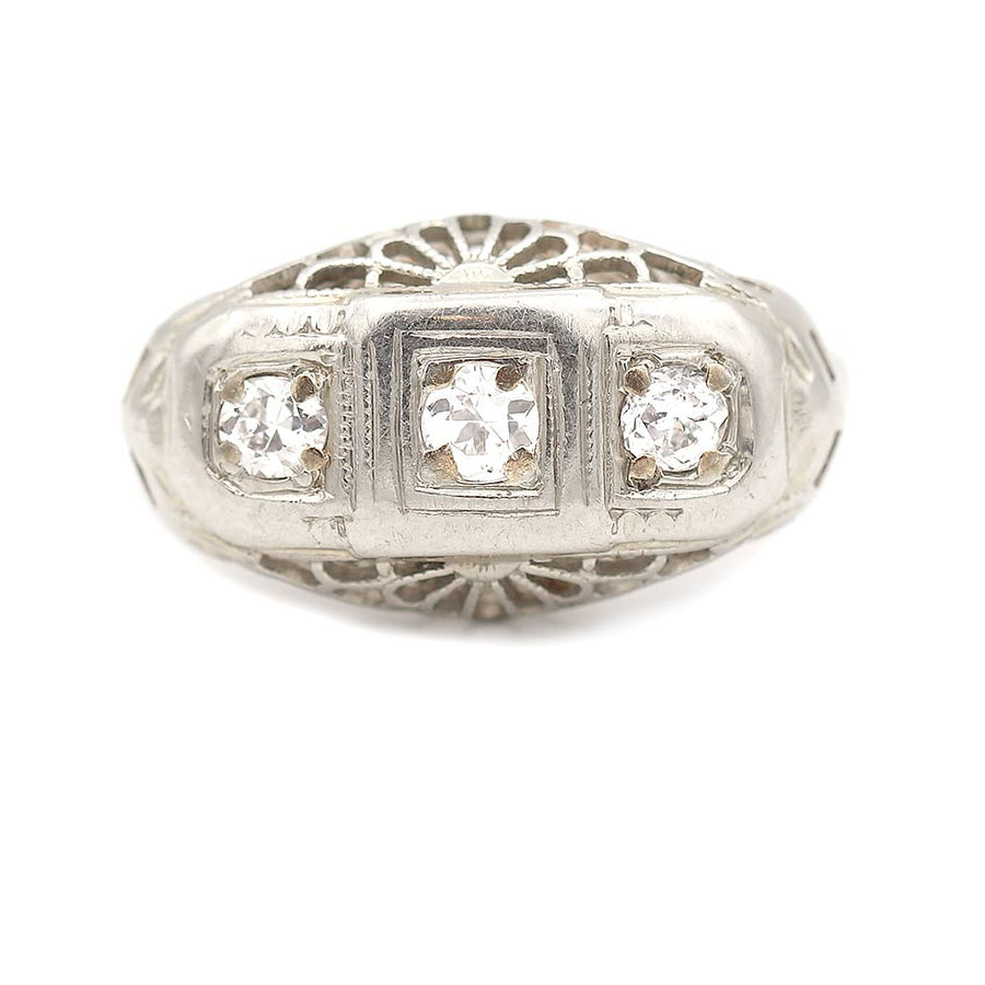 Antique .28 CTW 14 Karat Old European Cut Diamond Three Stone Engagement Ring