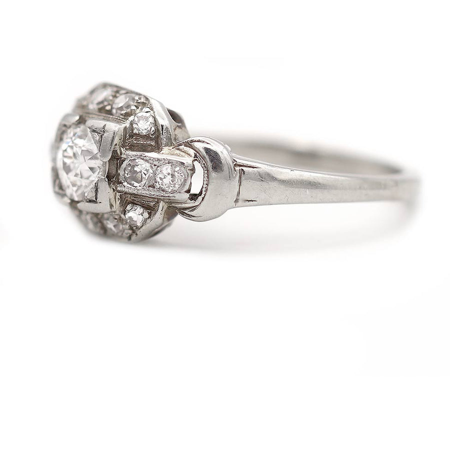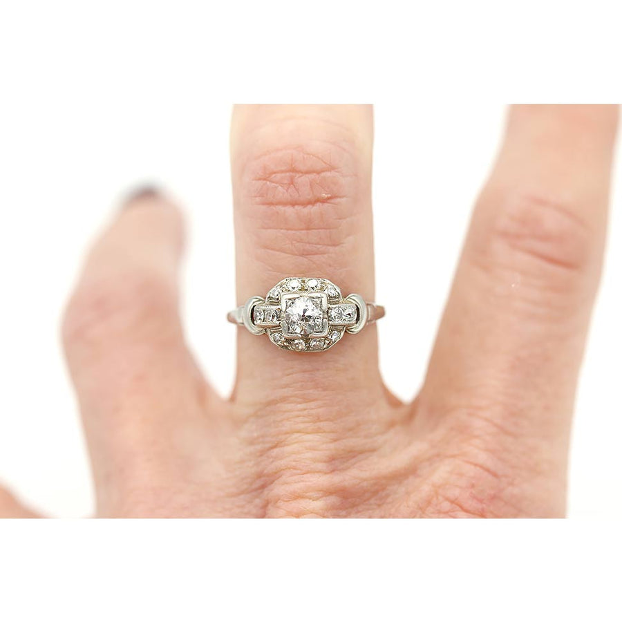 Antique .49 CTW Geometric Square Old European Cut Diamond 14 Karat Art Deco Engagement Ring
