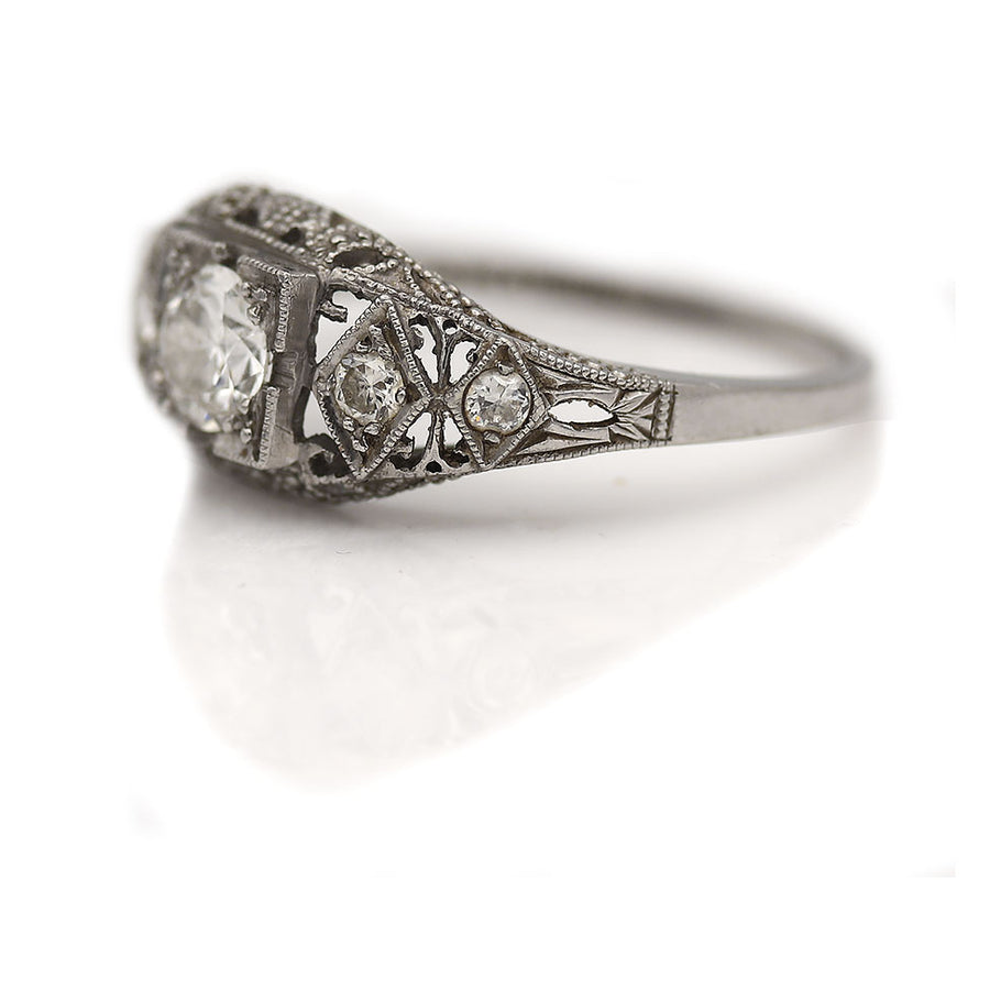 Antique .55 CTW Geometric Square Art Deco Engagement Ring with Milgrain