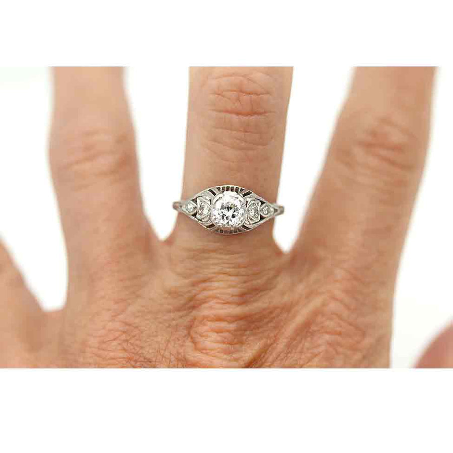 Antique .58 CTW Old European Cut Platinum Diamond Art Deco Engagement Ring